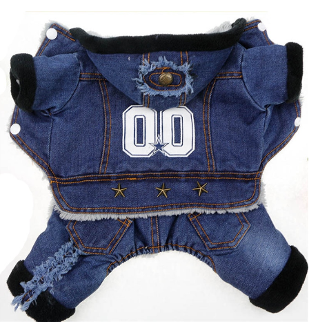 Autumn Winter Pet Dog Jeans Hooded denim Clothing Jumpsuit Overalls Dog Clothes Thickening Four Legs Pet Jacket Coat