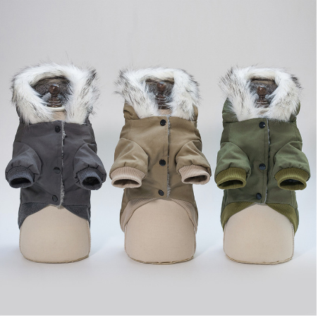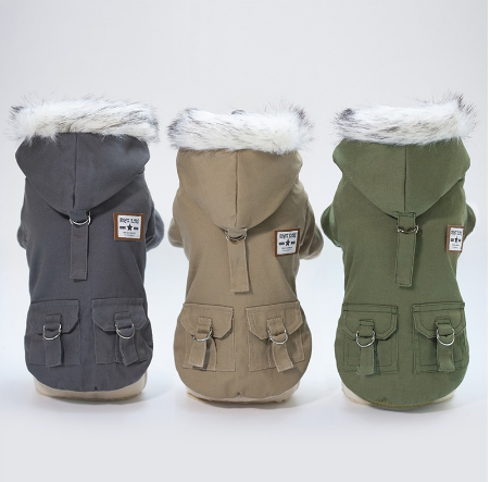 Style: Fashionable work clothes & Army Hoodies Sweater with fur collar. Thickened! Ribbed sleeves and waist ensure a snug fit. Keep your puppy more warm and stylish. Keep your dog active and run free.